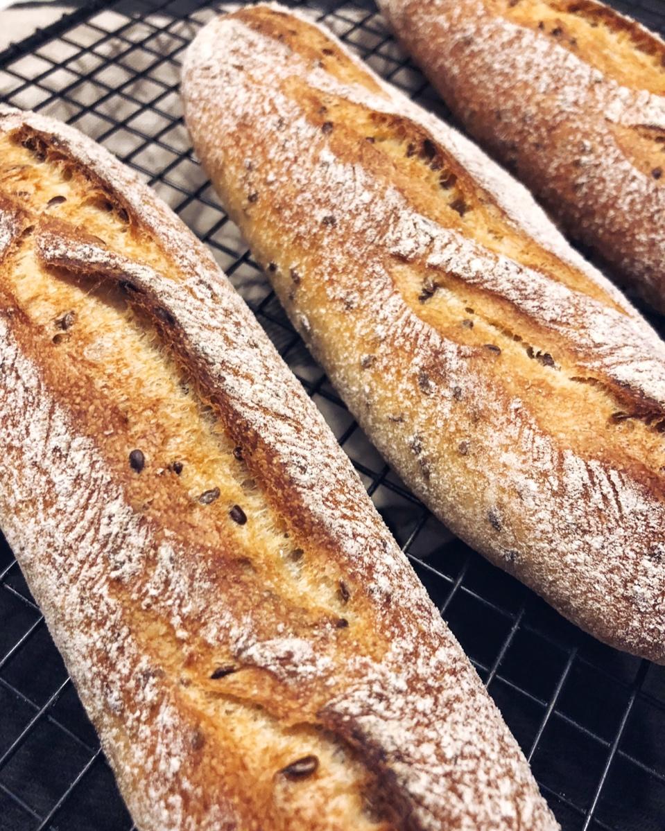 肉桂糖 做过 天然酵种黑橄榄小法棍(半天速成版附法棍整形割包高清套图) 农民的亚麻籽法棍,缩小版,就放这里啦!这里的小伙伴貌似更热闹😎我想换割包刀啦,怎么才能形成更粗犷的割口呢,那种橄榄型,叶子型的?#晚餐•2018年10月28日##天然酵种养啊养# 2018-10-28