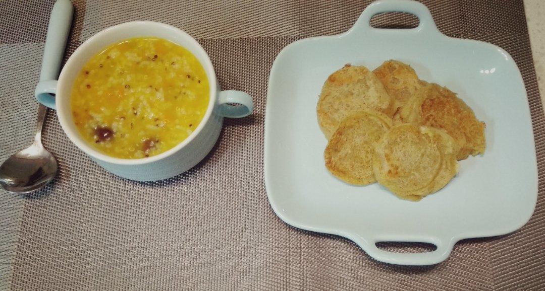 藜麦红豆粥,苹果板栗饼,内小孩你乖乖吃饭哈😊谢谢分享的宝宝食谱,