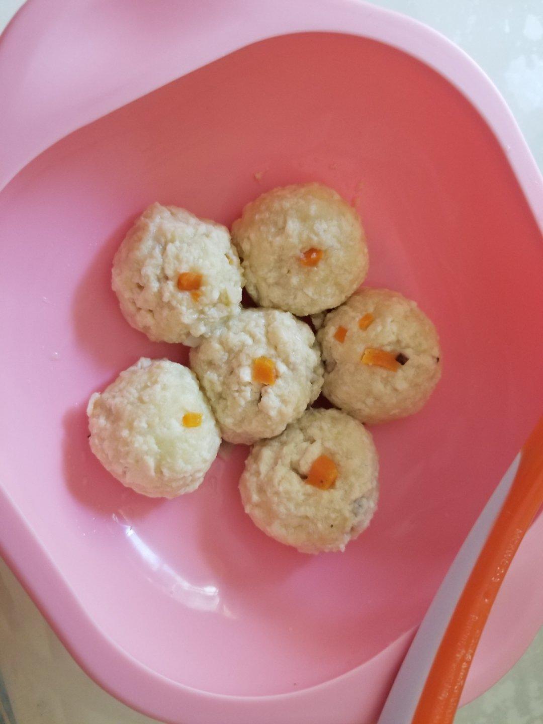 今日辅食北豆腐夹心丸~北豆腐蛋黄,里面夹心胡萝卜香菇猪肉末,搓成小丸子☺