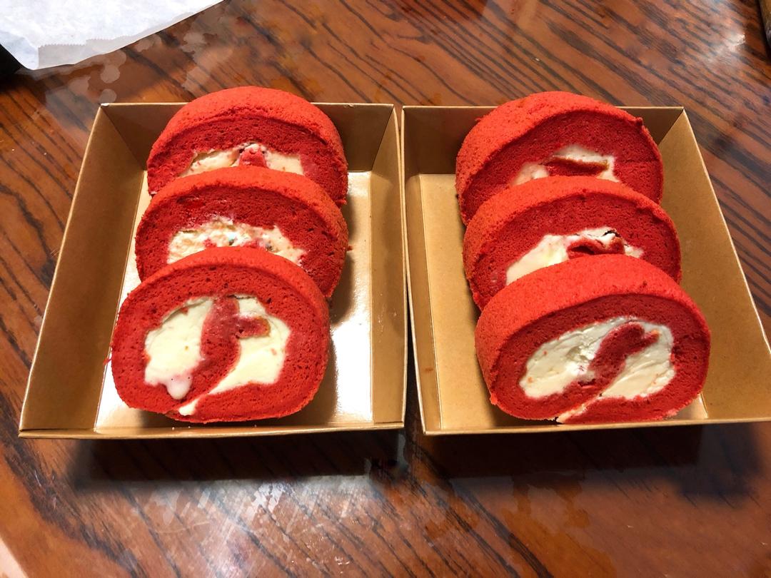 佳baby0312 做过 红丝绒蛋糕卷 网上买的红丝绒液到了,第二次做蛋糕卷,蛋糕胚按照配方比例来的,实际烤出来的颜色有点淡,然后我用修图软件调了下饱和度颜色才深了,怕胖只打发了150克淡奶油#晚餐•2018年11月2日# 2018-11-02