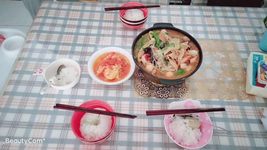 午餐 红薯米饭 西红柿炒鸡蛋 冒菜😁