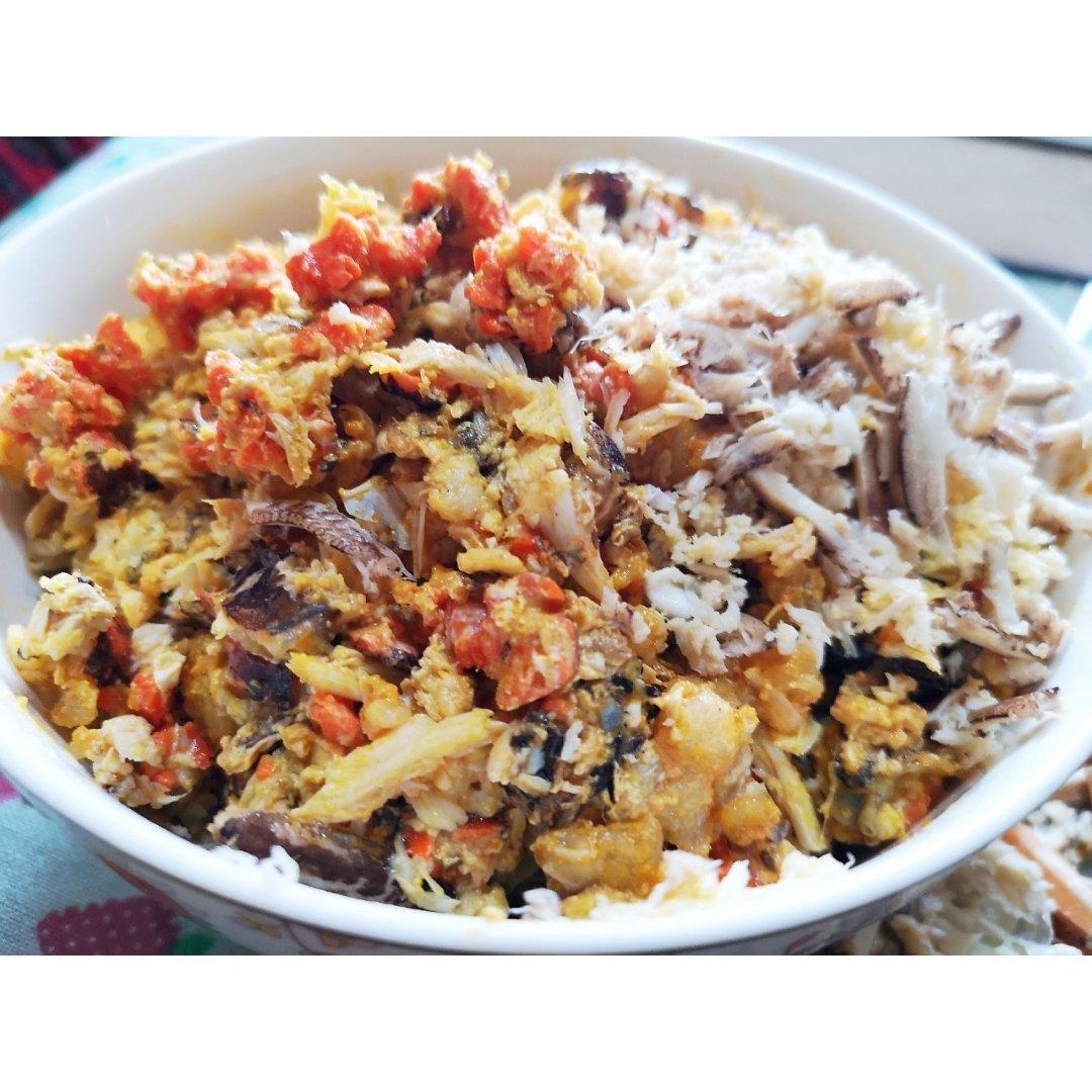 蟹肉蟹黄剥好,准备做蟹黄汤包😊😊