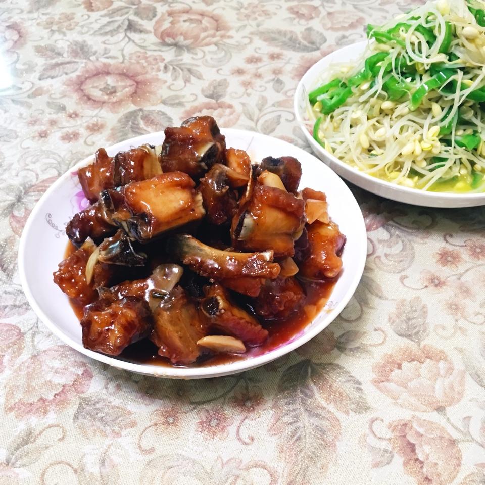 曹哥厨房 做过 快手家常菜 1、买好的排骨切成小块,洗净,加入姜、葱、八哥,煮成六成熟成熟2、冷锅加入食用油,炸制金黄色,捞出待用3、另起锅做糖醋汁,在锅内加入一匙油,加入葱姜,榨油直至闻到香味,加入少量水、绵白糖、醋,在锅内翻炒,炒出焦糖色4、将炸好的排骨倒入糖醋汁中翻炒,出锅 2018-11-10