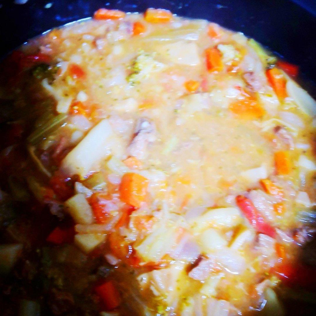 罗宋汤,牛肉切成小颗粒状,最后的炒面粉很重要啊,没有面粉感觉就像喝蔬菜汤,加了炒面粉,一下子就有了浓汤的感觉,饭前开胃汤