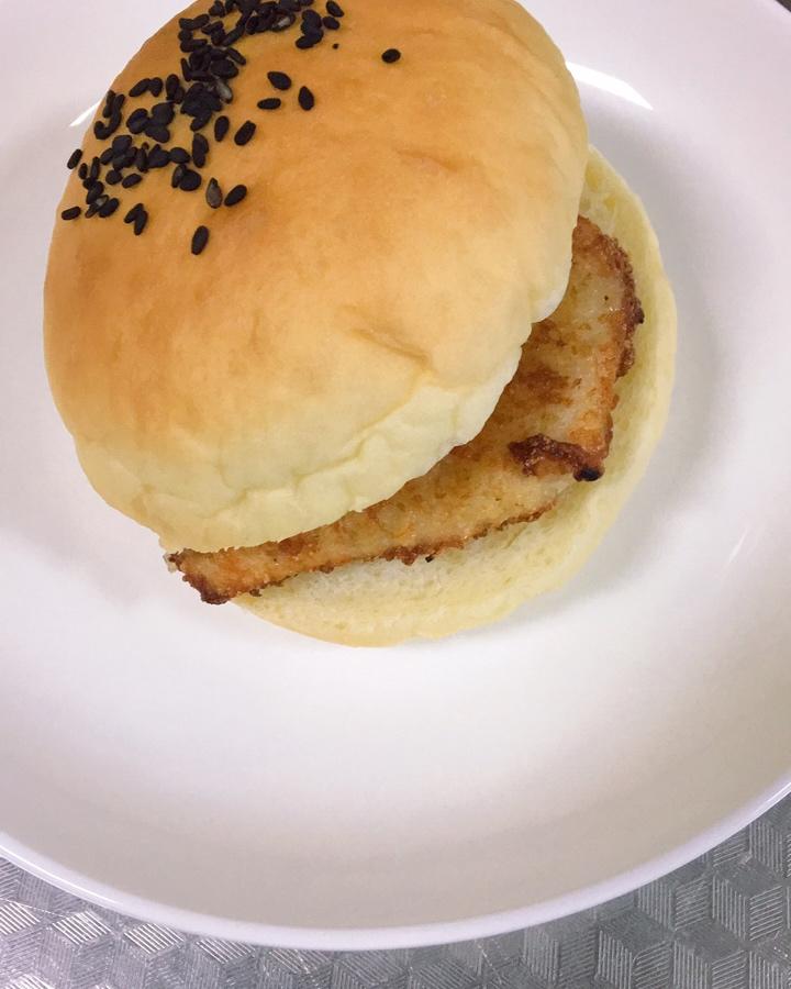 王子老妈 做过 早餐•2018年11月12日 #早餐•2018年11月12日#这星期开车,早饭就发的迟了,打卡13天:自制🍔(做了汉堡坯,煎了一小块腌制的鸡胸肉)莴苣炒鸡蛋,玉米粥[呲牙]我和海波哥的大饼,鸡蛋,鸭蛋,还有忘记拍的小黄鱼[偷笑] 2018-11-12
