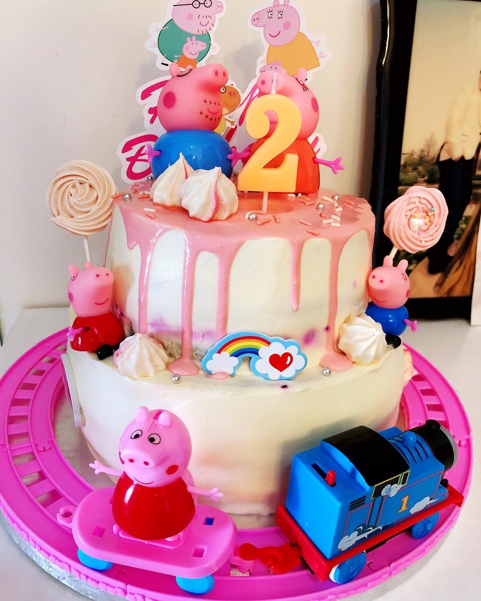 给闺女做的小猪佩奇主题蛋糕!芝士淋面方子很好,很成功!