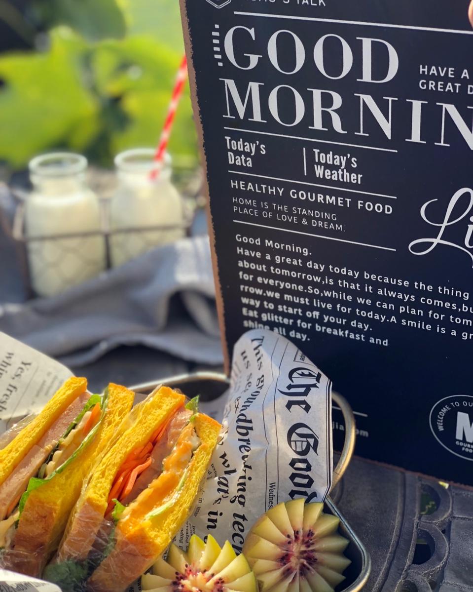 dq小布尔乔亚 做过 早餐•2018年11月13日 #早餐•2018年11月13日#小布家的早餐,南瓜吐司三明治🥪,🥛,🥝。今天的早餐有点晚,接受T先生的建议,拿到外面拍拍拍[偷笑] 2018-11-13
