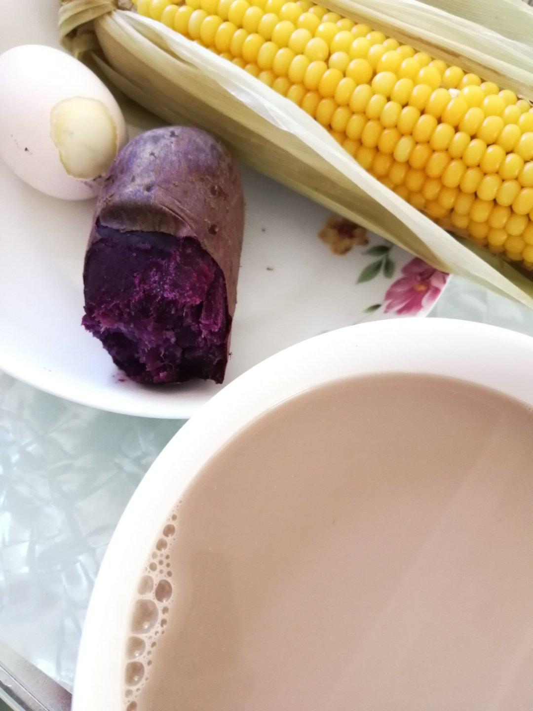 孕期早餐,鸡蛋,紫薯,玉米,豆浆