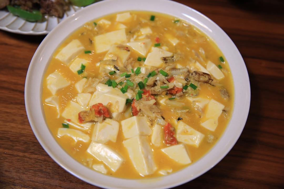 蟹粉豆腐,自己拆的大闸蟹。做法简单但是好吃。