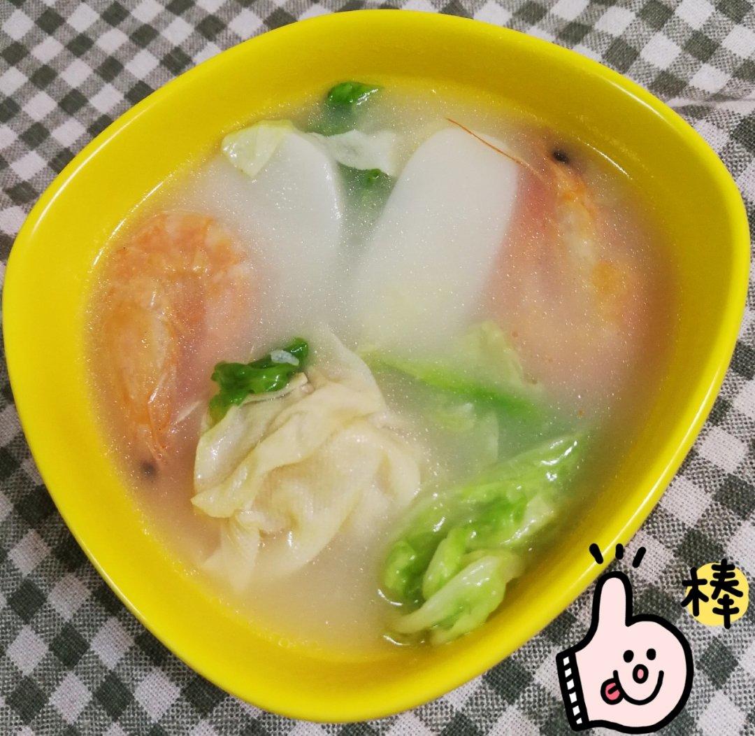 湖州千张包和虾干的组合,再加了些青菜,煮出来的年糕汤鲜的不得了