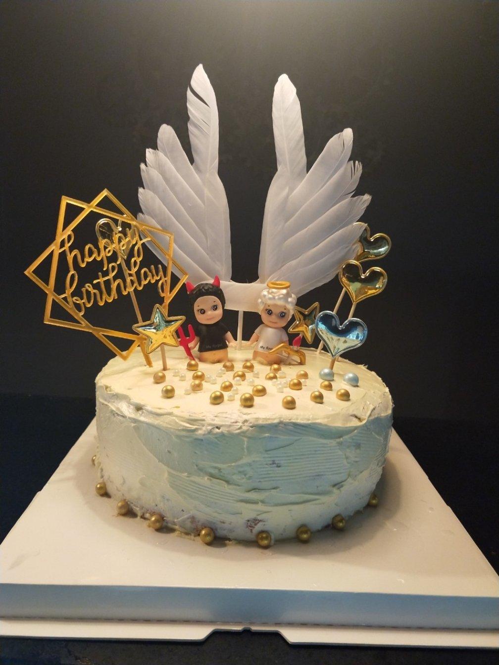 送给弟弟的生日蛋糕,戚风烤了两次才成功,第一次烤爆了蛋糕胚。
