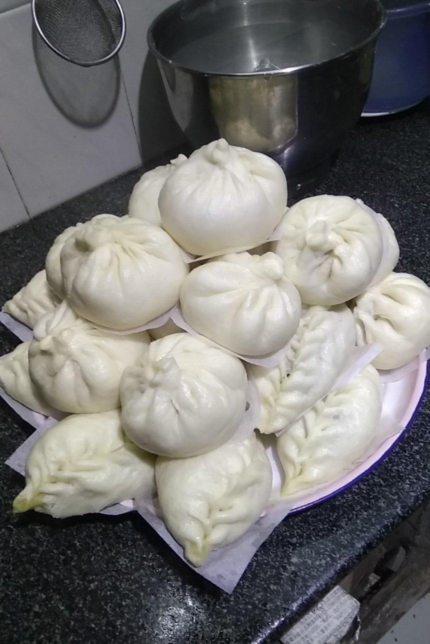 晚上在家里做的肉包和菜包
