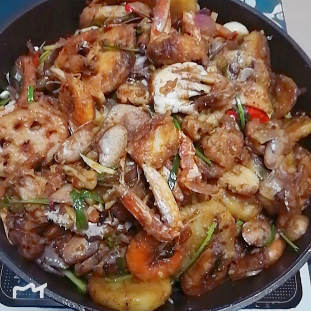 海鲜干锅,好吃,就是什么都要过油锅,累!