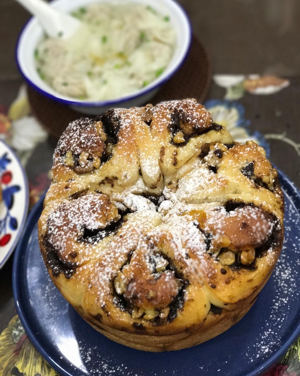 冬日里的小温暖:肉桂红糖核桃包,配上煎馒头片、小馄饨,美美哒!