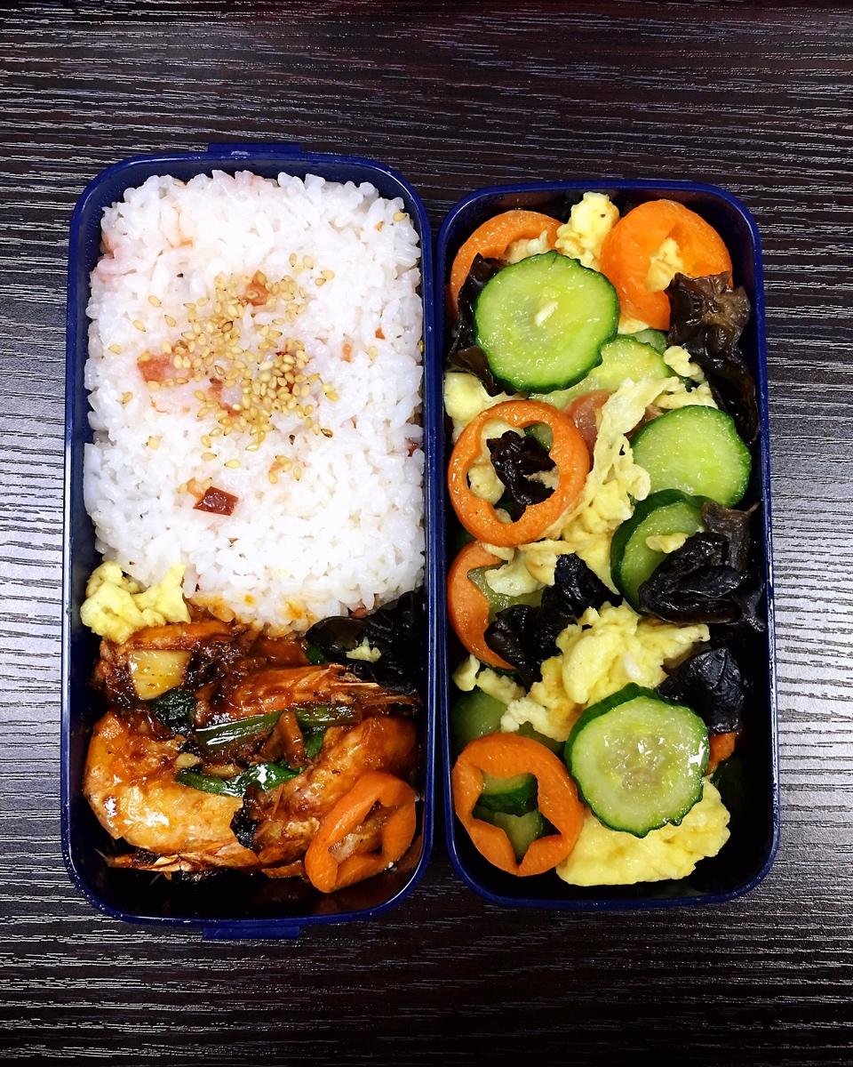 梅子拌饭&油焖大虾&炒鲜蔬