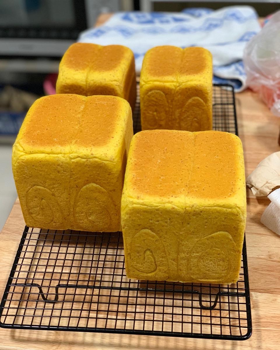 No.83*4。今天搓了七斤粉。。。南瓜吐司里加了全麦粉,颜色也hin喜欢。越来越中意水立方了。