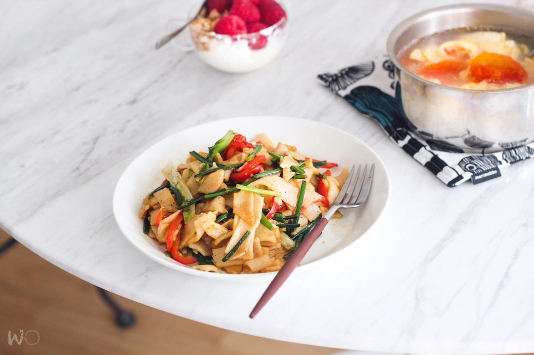 炒卷粉(这边有各种新鲜米粉)番茄蛋汤酸奶