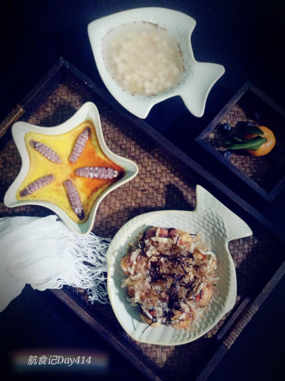 李佳潓 做过 早餐•2018年12月27日 航食记Day414有个良好的心态,学会活得自我,不必太敏感,不要让别人的目光束缚住了快乐。别人只能当个看客,你才是主角!日式章鱼🐙 虾仁小丸子+皮皮虾蒸蛋+鸡汤米甜汤=周四,早安!😋#早餐•2018年12月27日# 2018-12-27