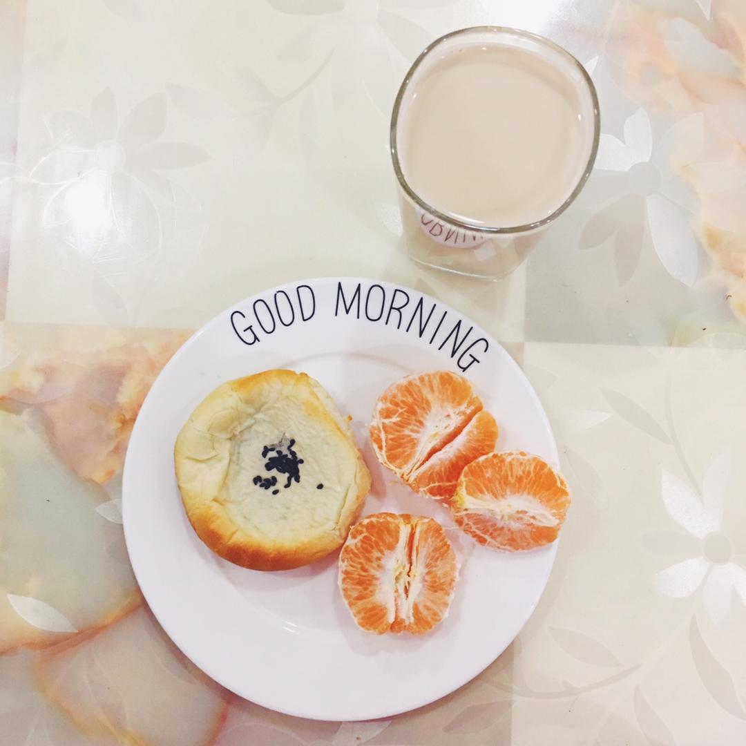 日式红豆面包(无糖豆沙馅)&橘子&拿铁咖啡☀