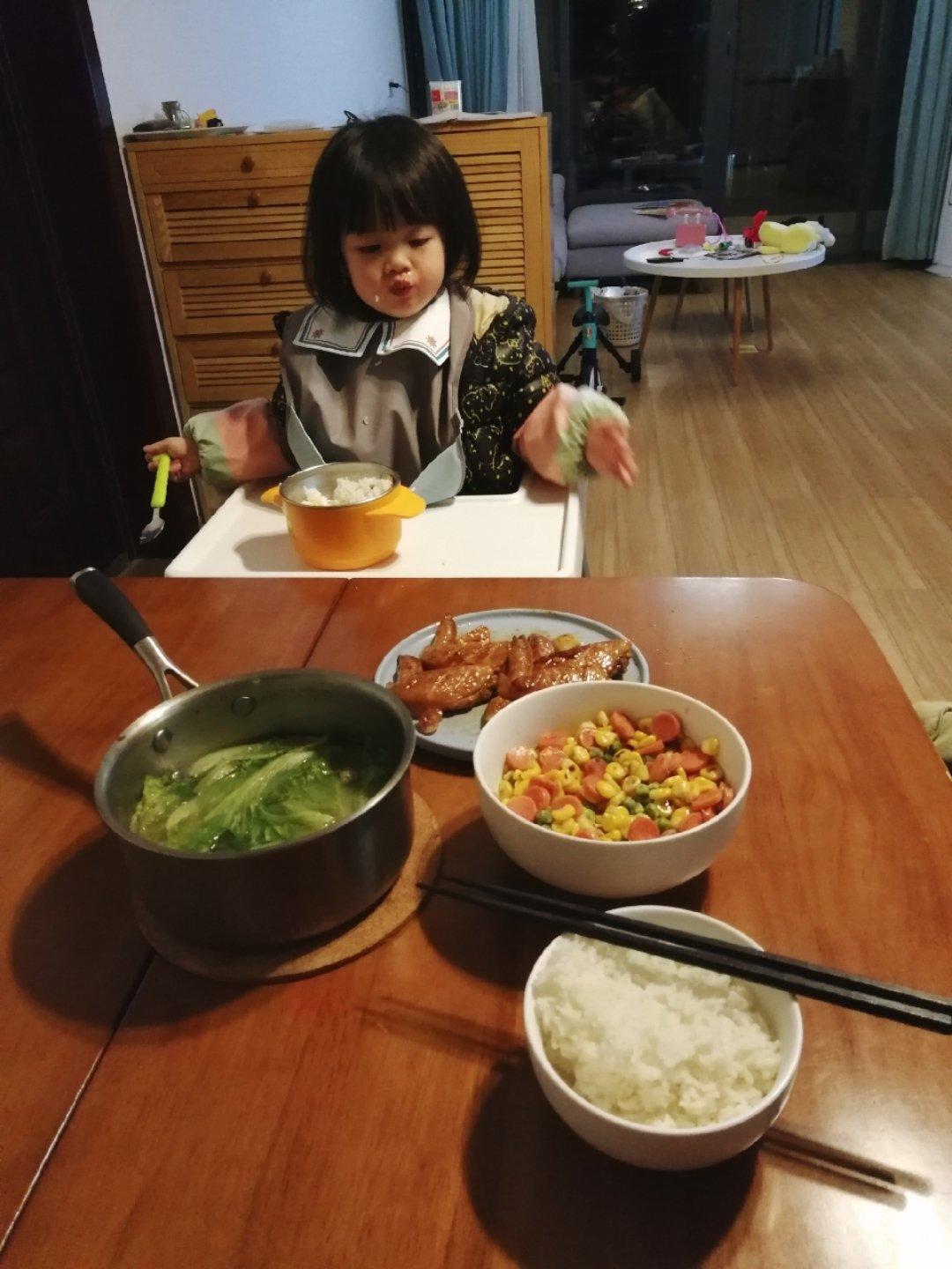 我想当一个很酷的家庭主妇 做过 晚餐•2019年1月10日 晚餐:蒜香鸡翅,金玉满堂,莲藕胡萝卜生菜汤这两天又回到了好好吃中餐的节奏~小朋友虽然咳嗽,吃饭却乖了很多(毕竟是吃饭困难户🙃)我一直在给她树立一个关于吃的规则:好好吃饭,就能吃好多零食。#晚餐•2019年1月10日# 2019-01-10