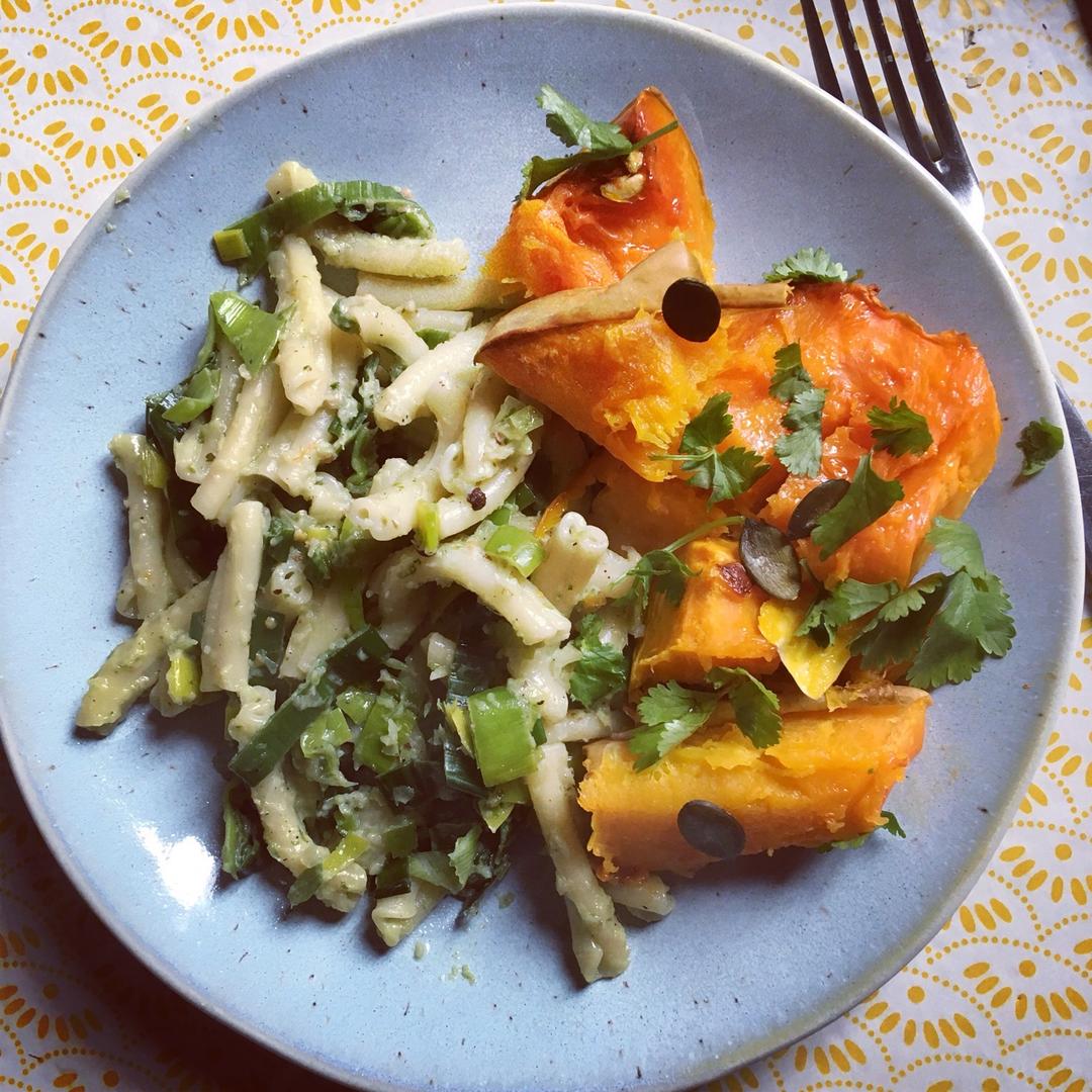 烤butternut南瓜配现做咖喱酱拌意粉