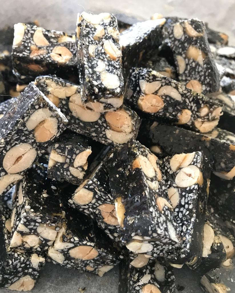 海洋/tp之舞 做过 黑芝麻花生糖 做了两次,第一次不够脆也许是糖温度不够高吧,因为我没有温度计,第二次闻到稍微一点糊味的时候起锅,放入芝麻花生,拉丝效果很好,感觉像澳阿胶糕一样嘻嘻😁,很好吃,配了漂亮的袋袋,美极了…… 2019-01-13