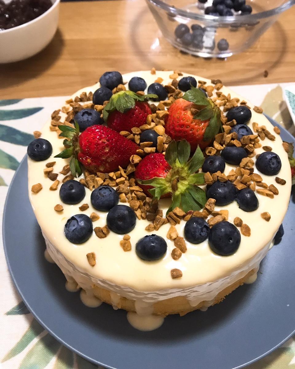 简单容易操作的中空戚风~最近很迷安慕希的芒果百香果酸奶,再蛋糕和奶盖上都用了它,超好吃~~