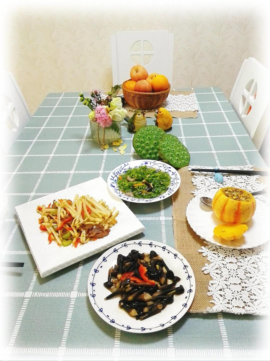 花生苗炒肉,上汤夜香花,清炒鸡枞菌