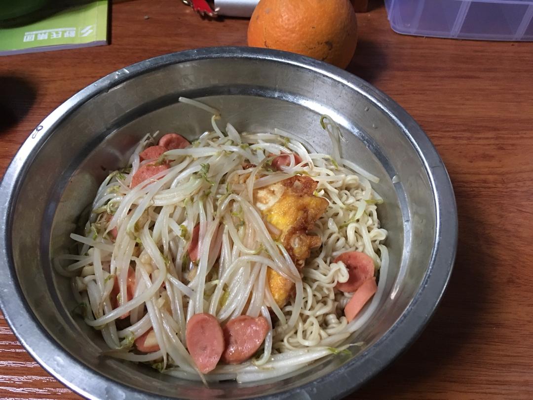 今天吃豆芽火腿拌面再加一个荷包蛋,奈斯😋