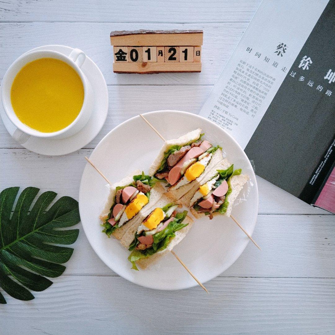 · 如果想清理冰箱里的零碎食材,那就做个三明治吧,三明治夹一切。[得意]