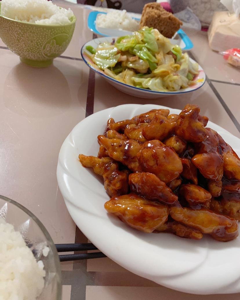 糖醋里脊,手撕包菜