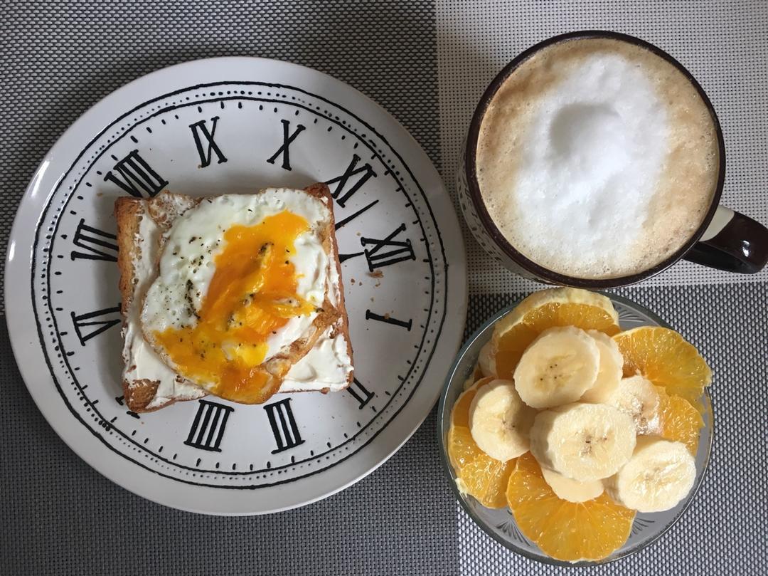 李可可coco 做过 早餐•2019年2月1日 #早餐•2019年2月1日#今日早餐鸡蛋奶酪开放式三明治,拿铁咖啡,香蕉橙子。昨天买了涂抹式的奶酪,真的很方便。买了新盘子和杯子,心情顿时很好。 2019-02-01