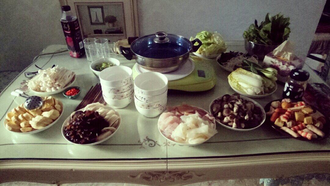 儿子请同学们来家吃饭,羊肉、肥牛、饮料、啤酒、红酒、烧饼还没上来,就摆了一大桌!后生可畏有活力!!