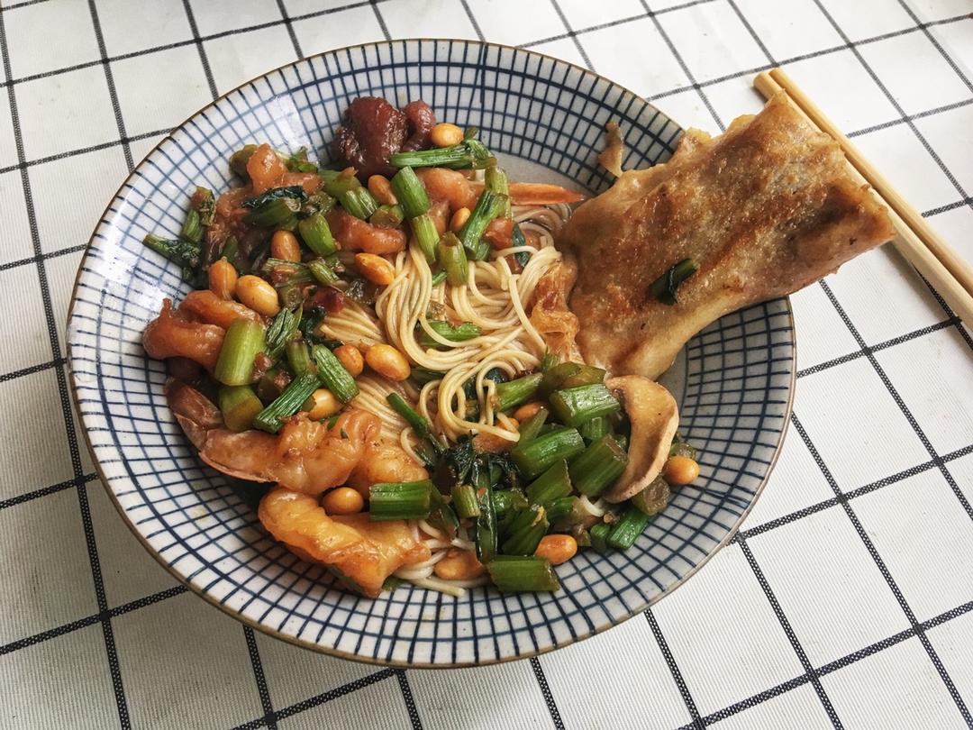 昨晚的剩菜凑合出了一碗面条