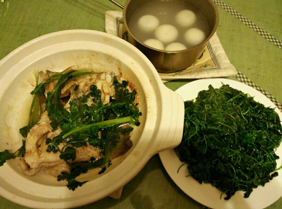 砂锅鲈鱼,酒香草头,芝麻汤圆*^_^*元宵节快乐😊