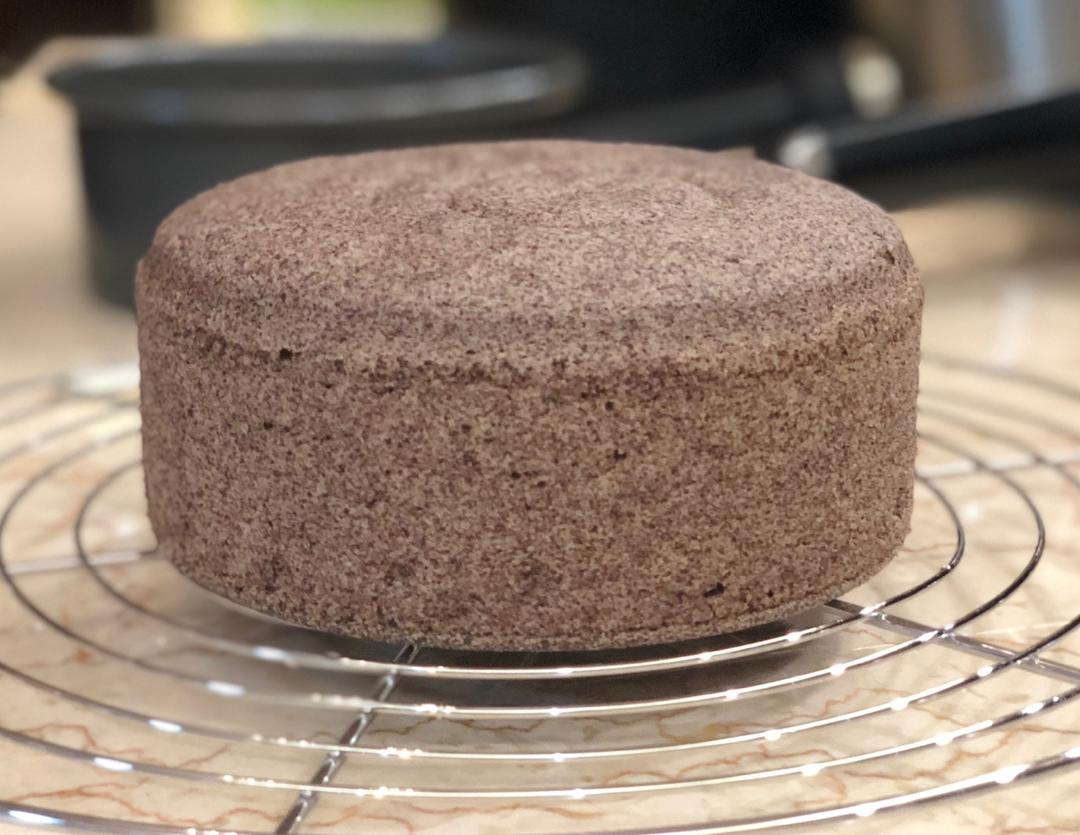 用了三个小鸡蛋,黑米粉做出的蛋糕偏粗