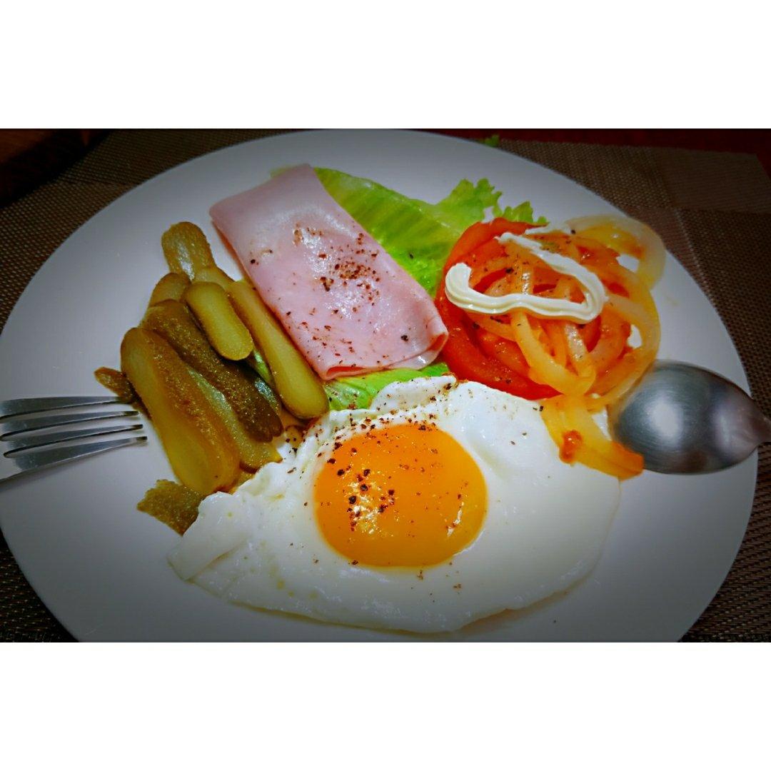 TC一TanChi 做过 早餐•2019年2月21日 #早餐•2019年2月21日# 早餐愉快!💐🌻🌻西生菜+西红柿+洋葱+酸黄瓜+火腿,煎蛋,椰浆燕麦面包,山楂枸杞热饮,咖啡☺☺😌 2019-02-21