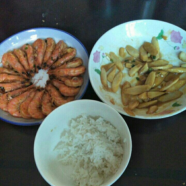 椒盐虾和蒸山药,好吃😋