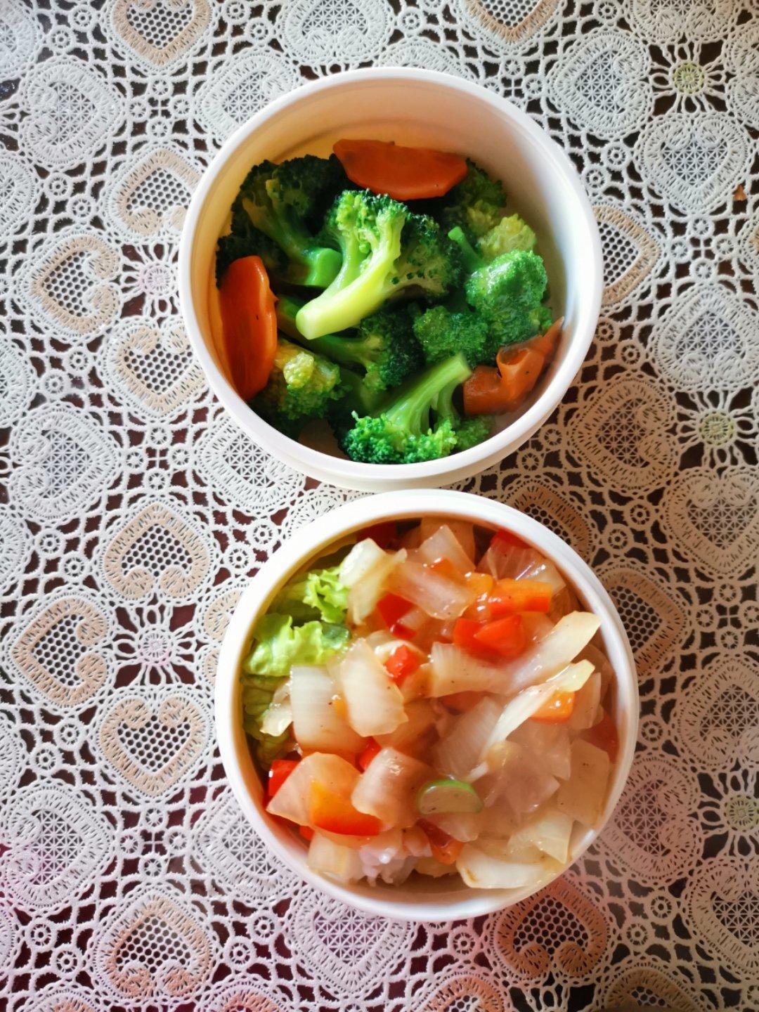 蒜蓉西兰花+洋葱鱿鱼