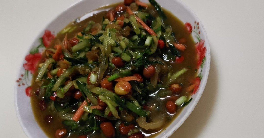 朋友送了一件即食海蜇丝,按着方子做,味道不要太好了😜一个人都能吃完这盘😂