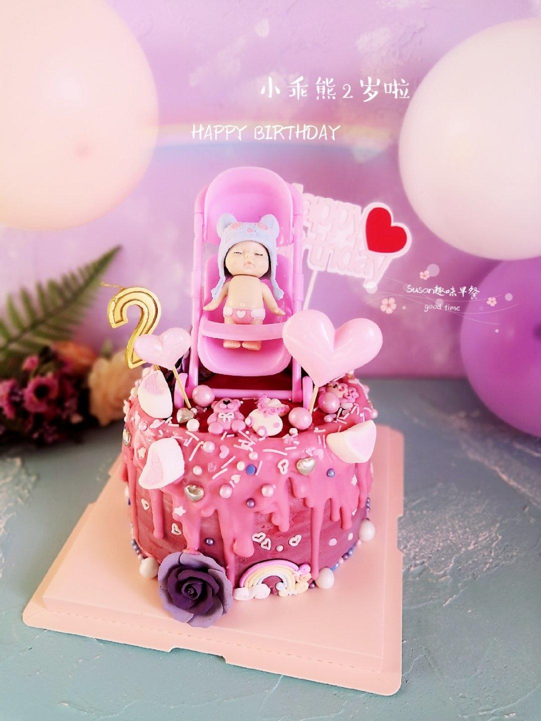 #早餐•2019年3月15日# 为宝贝熊熊做的两岁生日蛋糕,祝宝贝生日快乐。比去年有进步了很多,戚风长得高,抹面和淋面也有进步。妈妈要每年为你做,等你婚礼时候,为你做个婚礼蛋糕。。。想起来就老泪纵横。。。一早上,见到气球,和小猪佩奇,开心到直说我喜欢,趴到气球里不起来咯。宝贝两岁生日快乐。今早的拍照不太顺利,希望能出几个好片,起太早得熊又睡了一觉,哭哭哭要回家。期待五月拍花海能有好表现哟。哈哈。全家人都来陪你过生日,你是我们的宝贝熊熊。茁壮成长,么么哒宝贝。今日热量爆棚,光荣感冒,嗓子鼻子发炎,希望周末每天12小时课能坚持下来。减少食量和运动量,周末调整生息一下#宝宝辅食##蛋糕🎈#