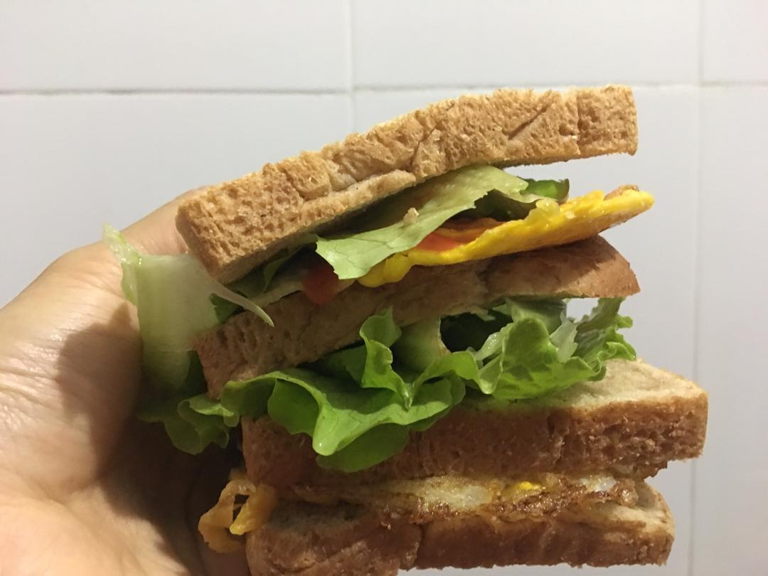 一份是双蛋桂花鱼三明治,一份是我的水煮蛋加生菜三明治🥪,孕期太上火了,所以就不吃煎熟的蛋了,改水煮蛋,嘻嘻😜
