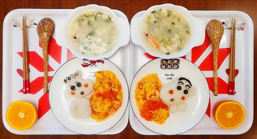 seven(2019.03.21)早安🍴今天我为孩子们准备的早餐:🍅蕃茄炒蛋盖饭、海鲜豆腐