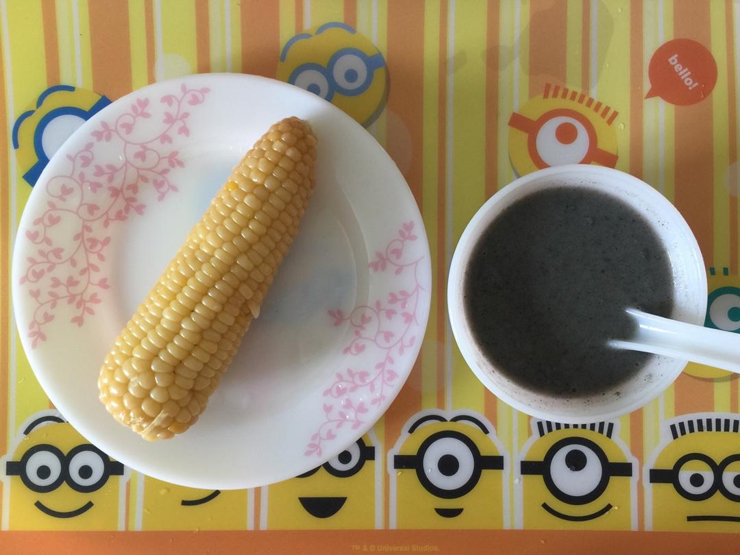 今天的早餐,玉米+芝麻糊,健康!
