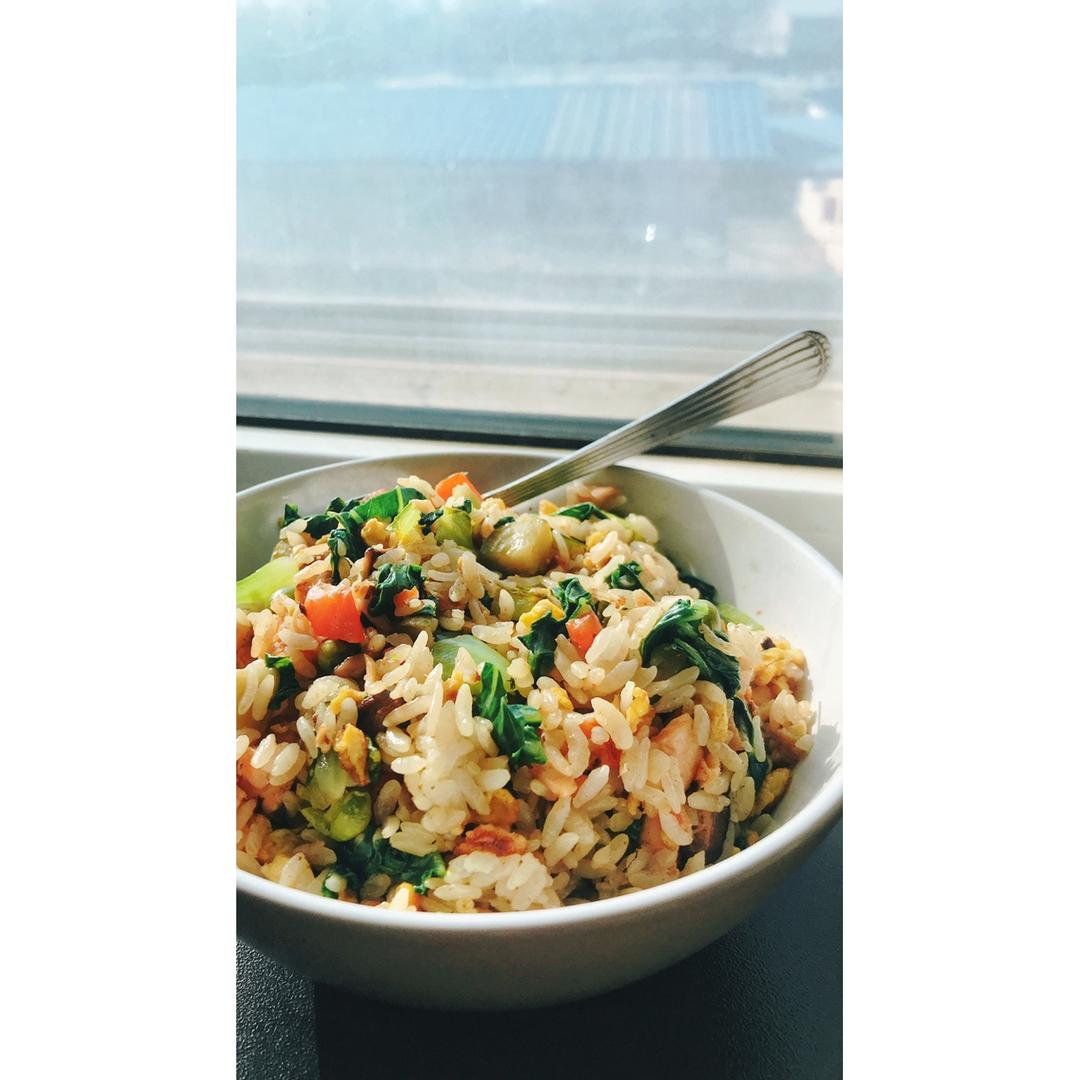 拾叁_time 做过 酸黄瓜芝麻三文鱼炒饭配烧汁酱【健康一锅端】 #早餐•2019年3月23日#今天☀️好棒早饭吃的有点像中饭加两颗油菜颜色也是棒棒哒还有拌上酱汁能吃下一锅的说的一定是我🌚 2019-03-23