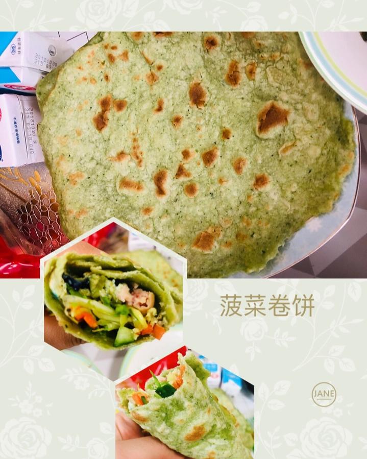 自己做的菠菜卷饼。