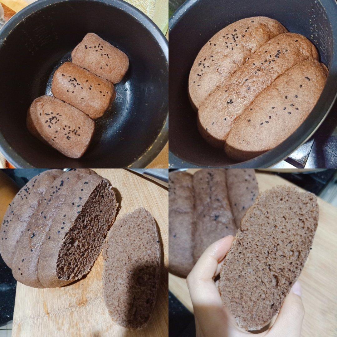 全麦土司,没有厨师机也没有模具,电饭煲做成这样感觉很成功了。