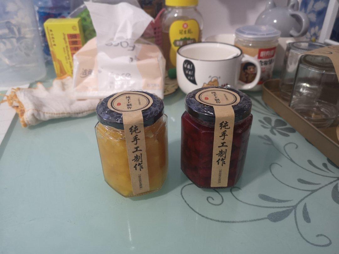 做了草莓酱和菠萝酱,没有冰糖,用的白砂糖,男票说跟买的一样,吼吼~