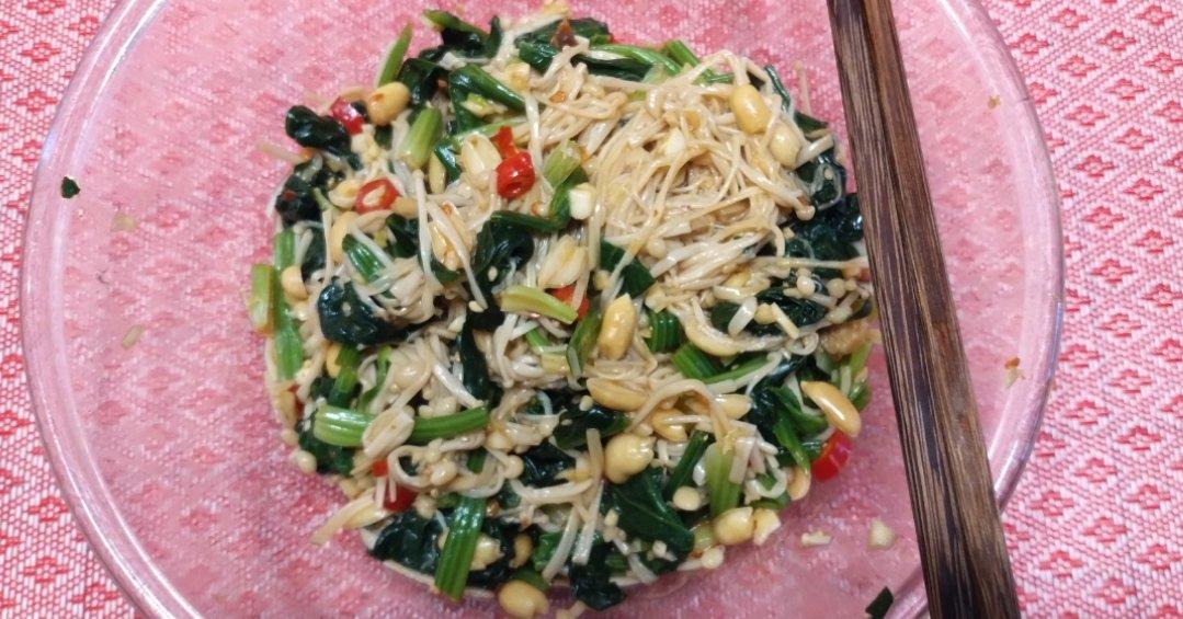 凉拌菠菜金针菇