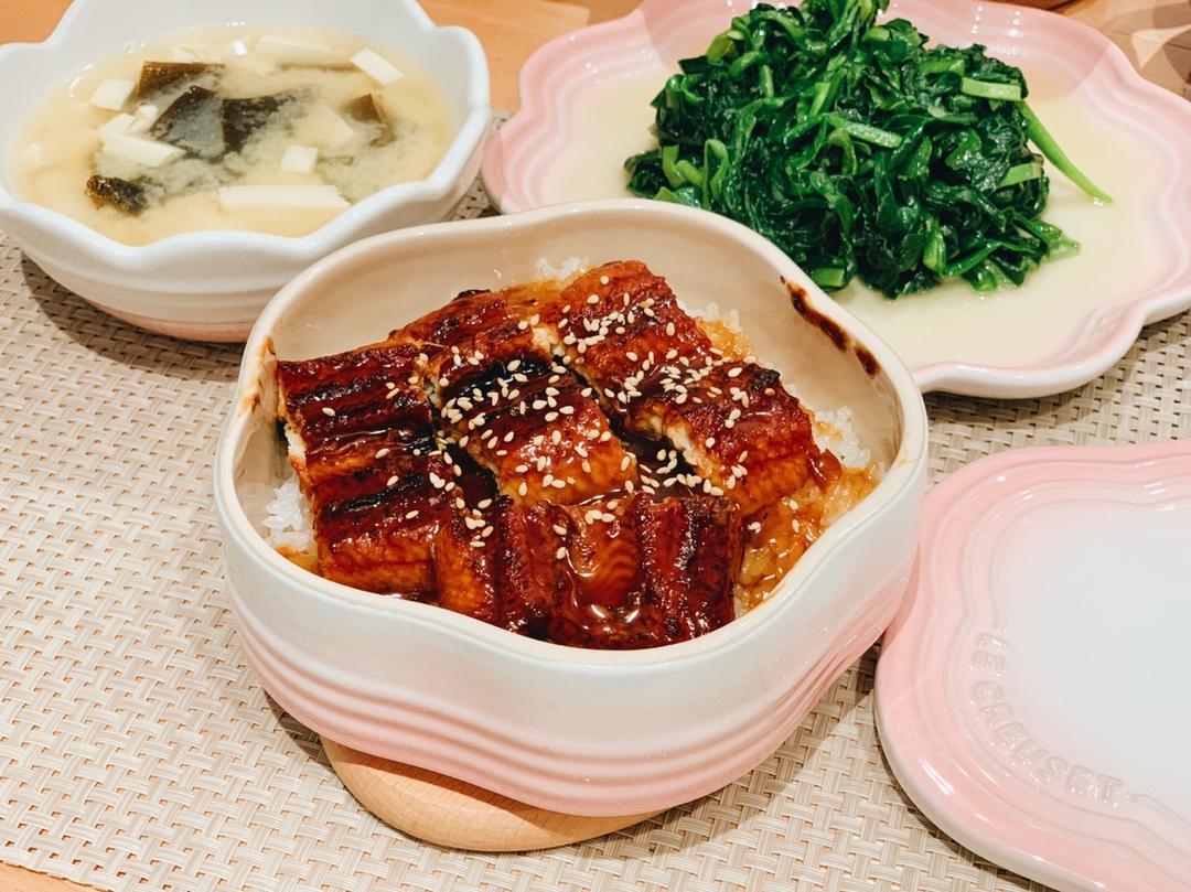 鳗鱼饭,味增汤,韭菜